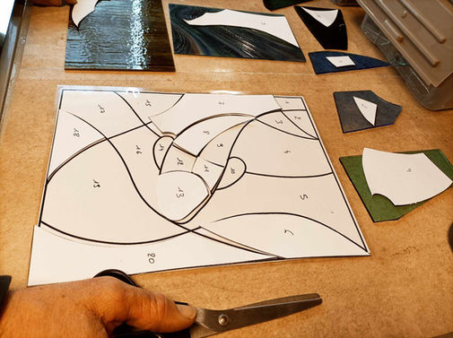 Le calibrage, pour pouvoir couper toutes les pièces de verre.