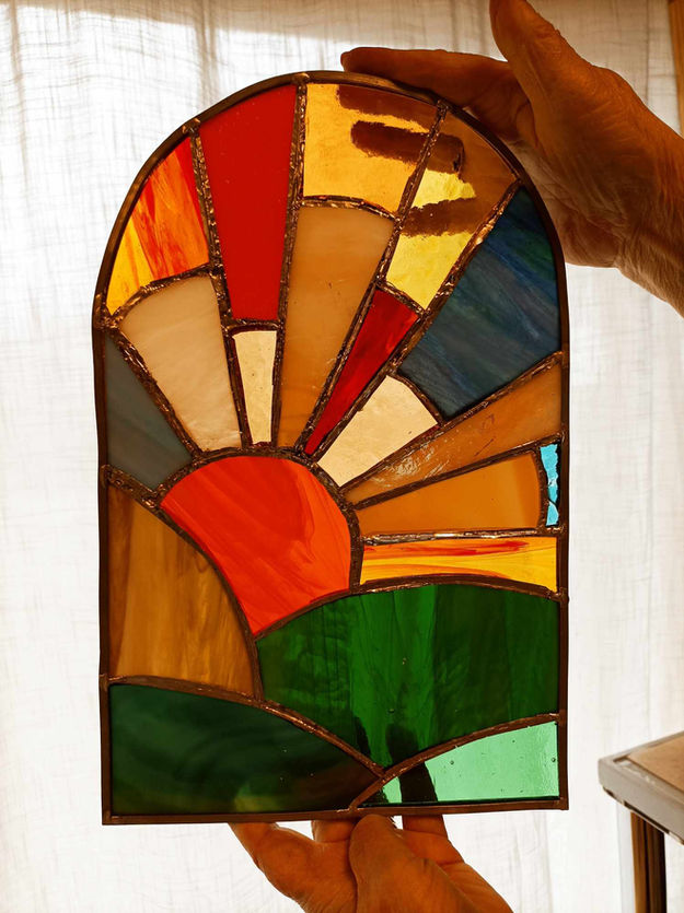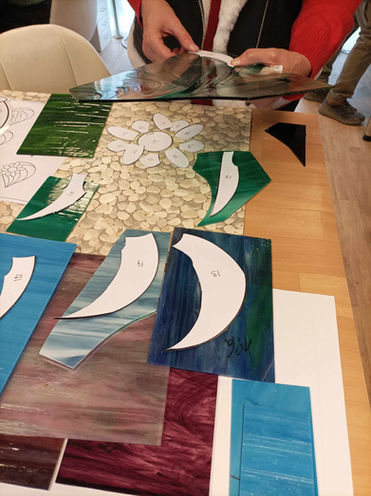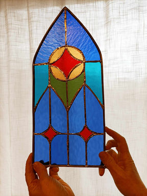 je vous invite à découvrir le stage "Vitrail Tiffany " reconnue pour ses lignes fines et délicates (25 x30 cm environ).